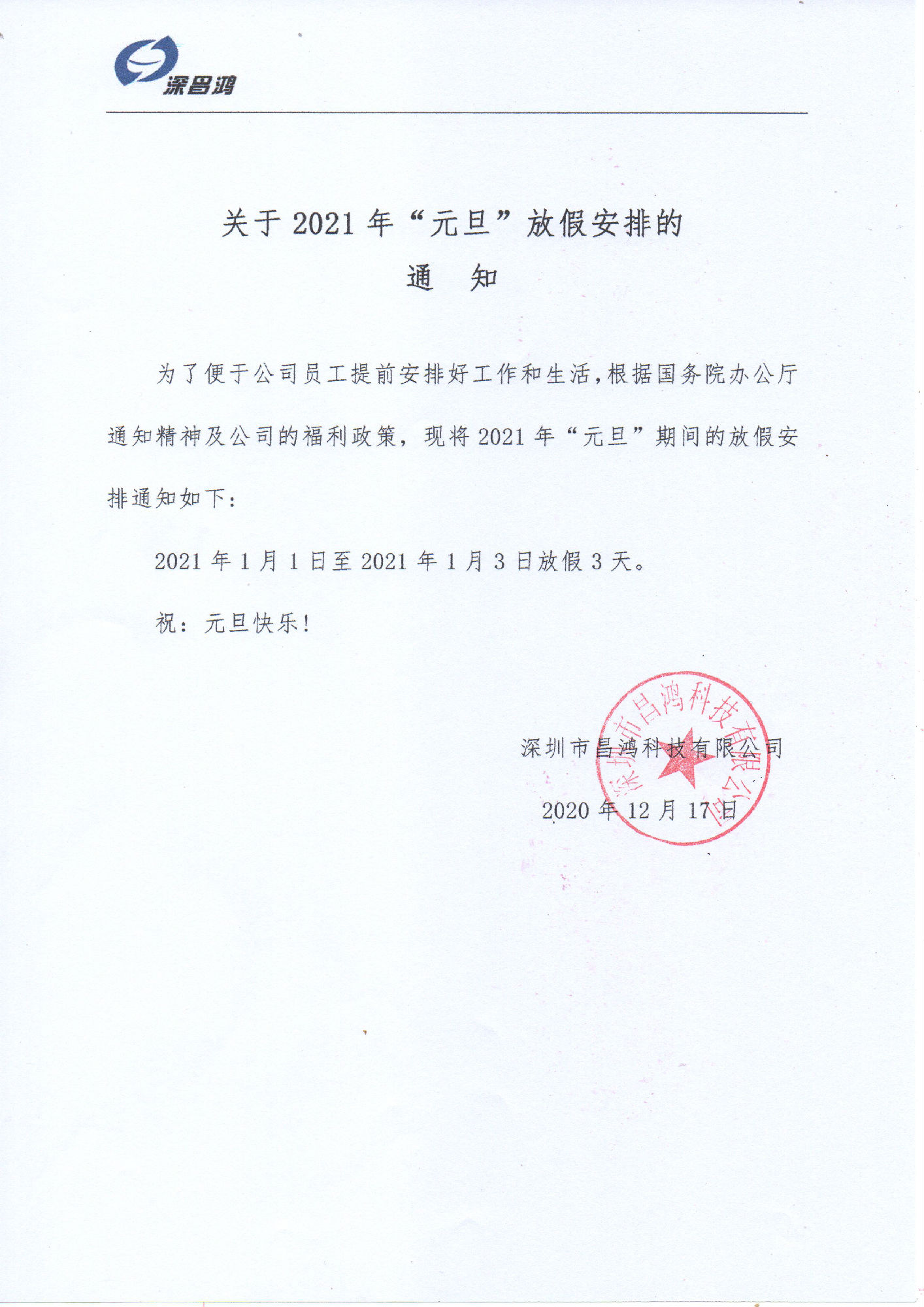 關(guān)于2021年“元旦”放假安排的通知